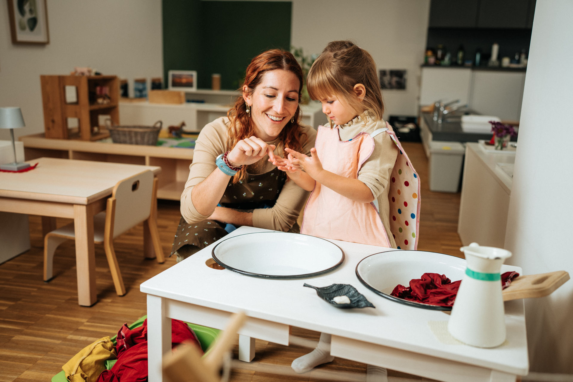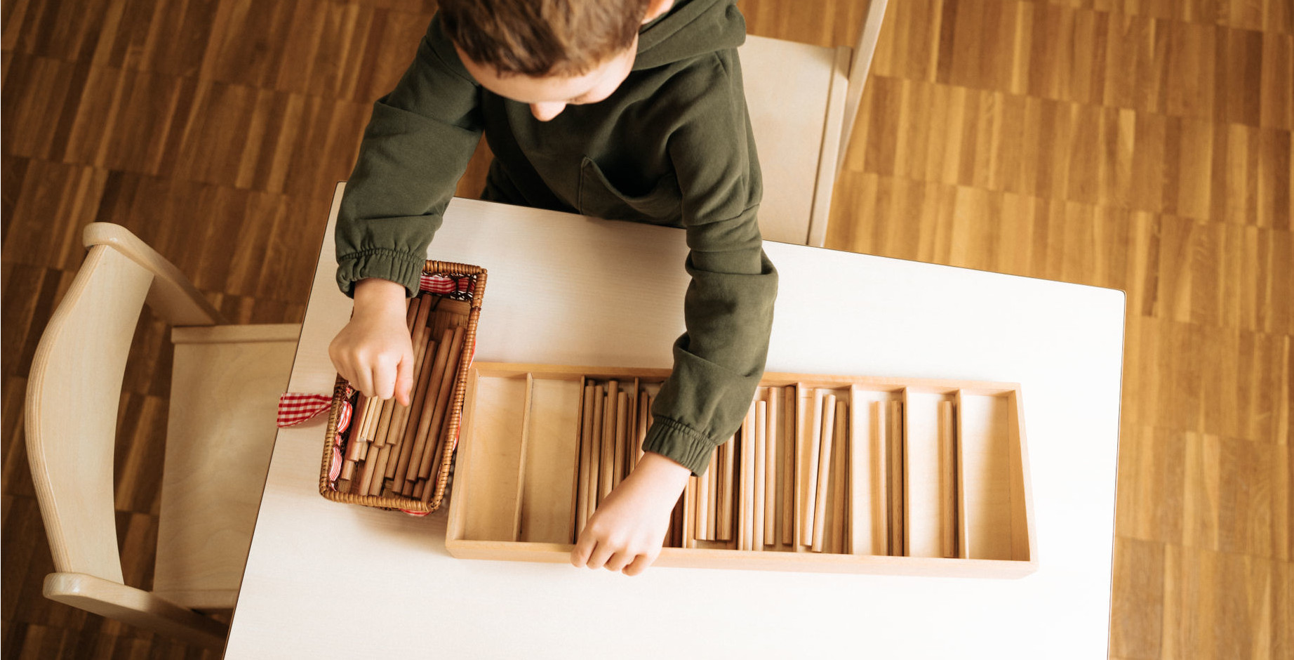 Vorbereitete Umgebung: Klare Strukturen, ansprechendes Material und viel Raum zur Entfaltung ermöglichen selbstständiges Lernen.