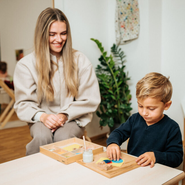 Im Mittelpunkt unserer Arbeit steht das Kind – mit seinen Bedürfnissen, Interessen und Talenten. Die Montessori-Pädagogik bildet dabei den Kern unseres pädagogischen Handelns. Sie gibt uns die Grundlage, Kinder in ihrem eigenen Tempo zu begleiten, ihre Selbstständigkeit zu fördern und ihnen Raum zur Entfaltung zu geben.