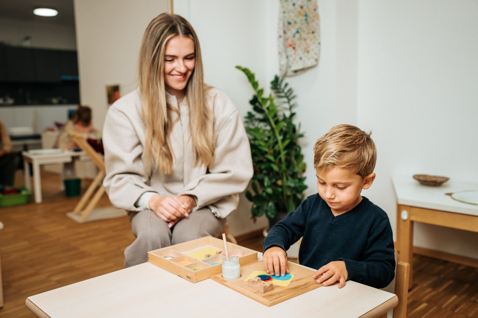 Freie Wahl: Kinder entscheiden, womit, wie lange und mit wem sie arbeiten möchten – begleitet von aufmerksamen Pädagog*innen.