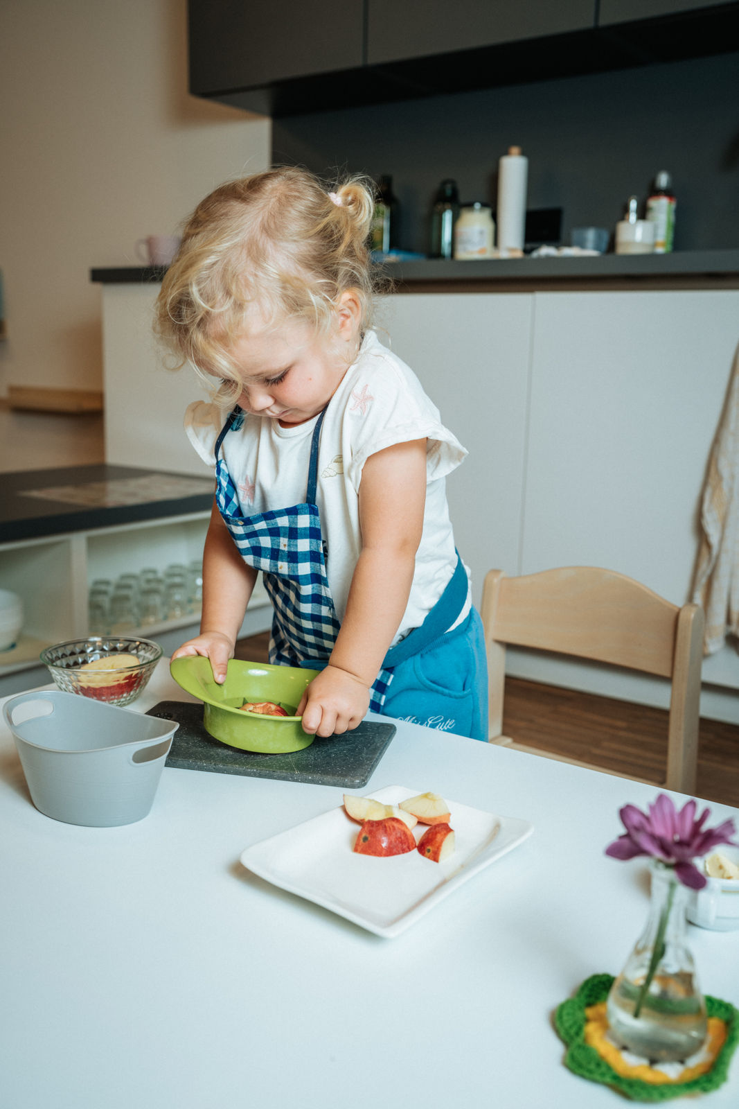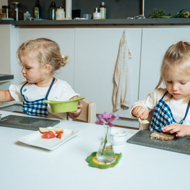 Eine ausgewogene Ernährung liegt uns am Herzen. Die Kinder erhalten eine von uns vorbereitete gesunde Jause und ein frisch gekochtes Mittagessen aus unserer hauseigenen Küche – bevorzugt in Bio-Qualität. Schon die Jüngsten werden dabei altersgerecht in die Zubereitung einbezogen und lernen so Verantwortung im Alltag.